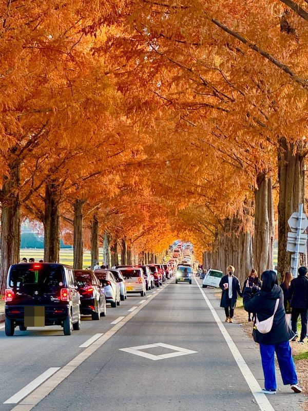 なんとか回り道をして渋滞を回避しようと試みましたが、結局メタセコイア並木の手前で大渋滞に巻き込まれ、予定より約2時間遅れで現地に到着。